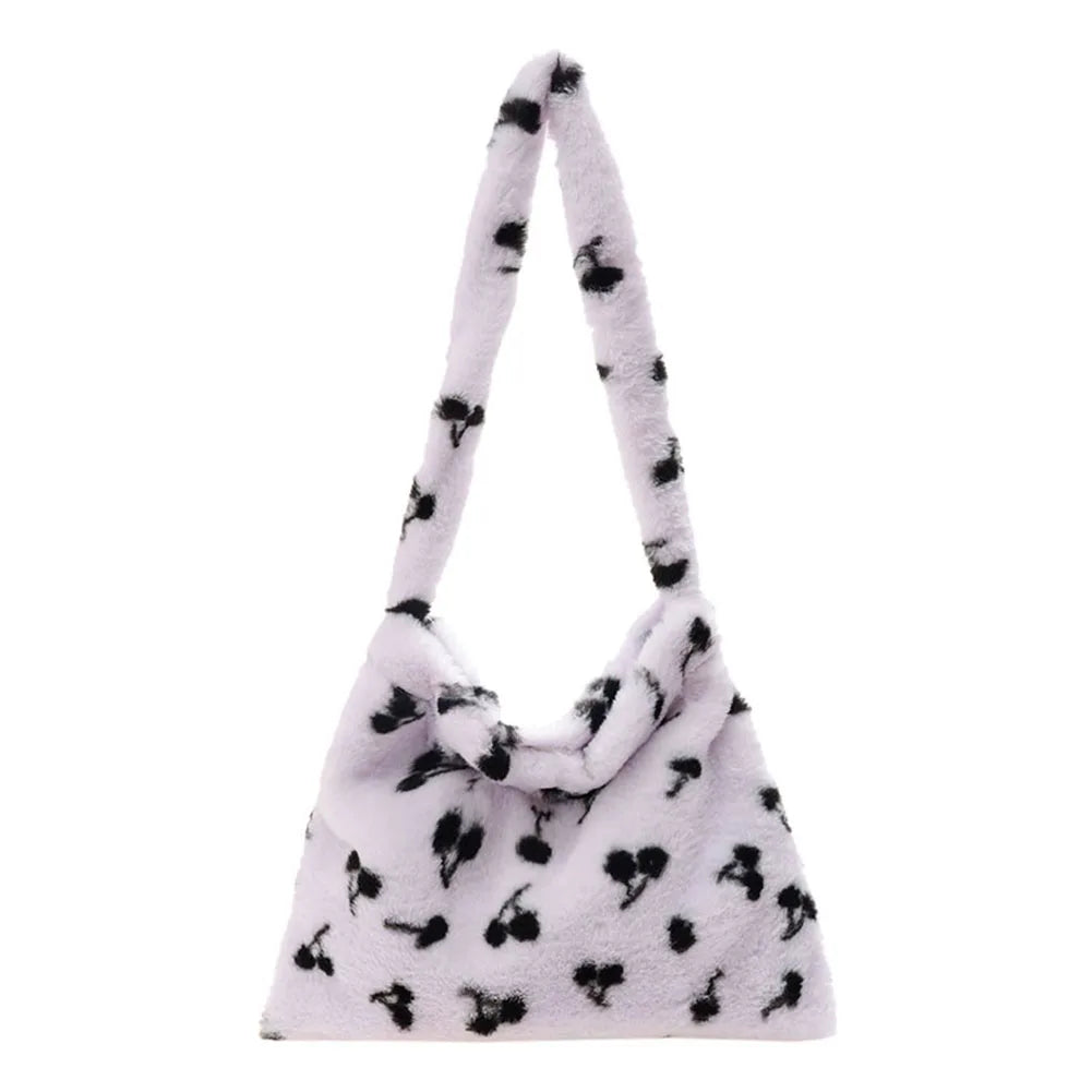 Stay stylish with this cherry pattern print plush underarm bag. Perfect for casual outings and carrying small essentials.