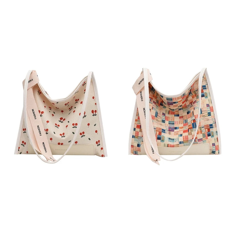 Cherry Plaid Messenger Bag Canvas Shoulder Bag for Women