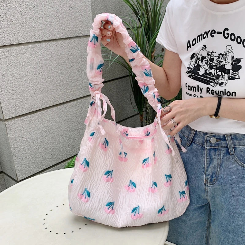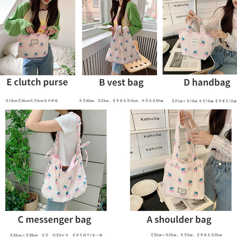 Cherry Small Tote Shopping Bag Retro Shoulder Messenger Bags Pink Girl Clutch