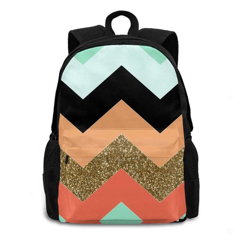 Stand out with this stylish Chevron Pattern Orange Sunset Beach Glitter Sea Foam backpack. Perfect for carrying your essentials with a pop of color.