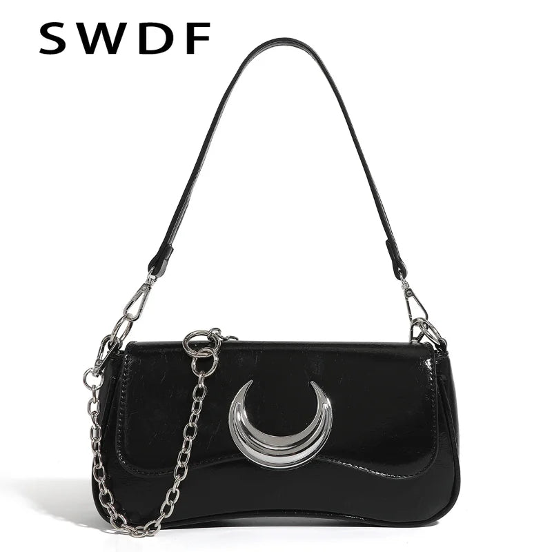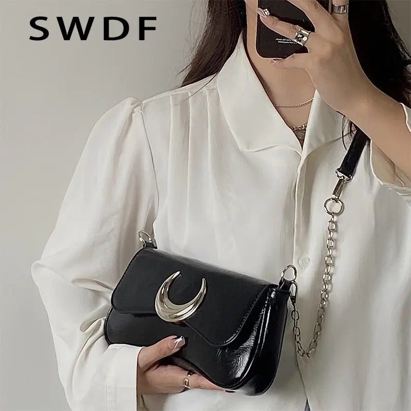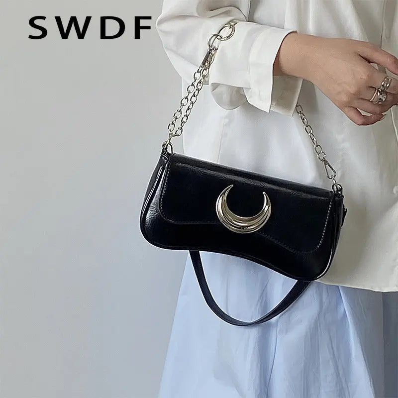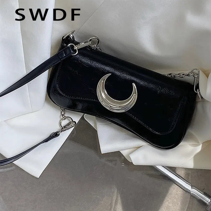 Stay stylish with this chic Chian leather shoulder bag designed for women. It features a moon sailor sac design, perfect for daily use.
