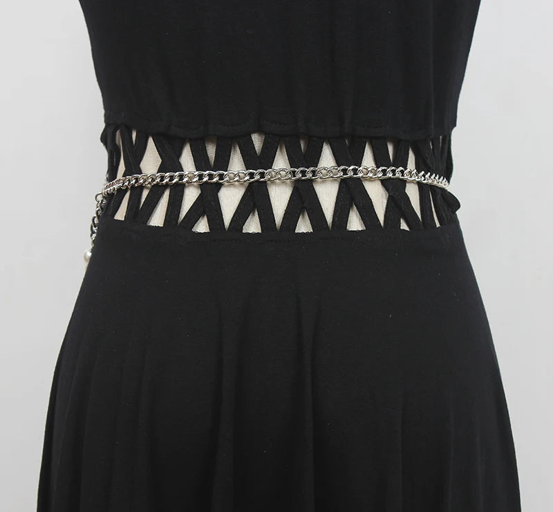 Chic Mini Rhinestone Waist Pack with Pearl Chain for Women