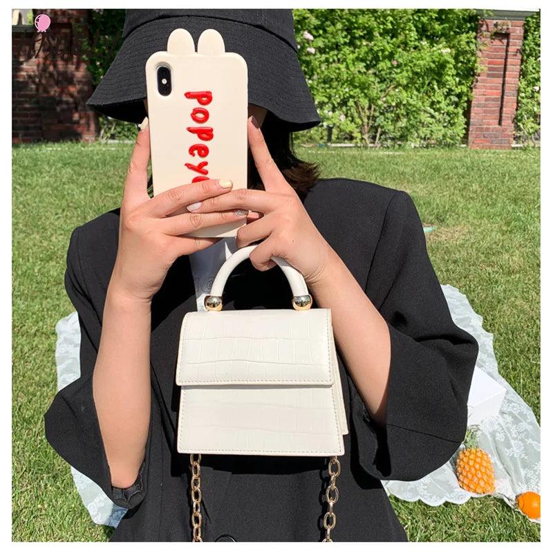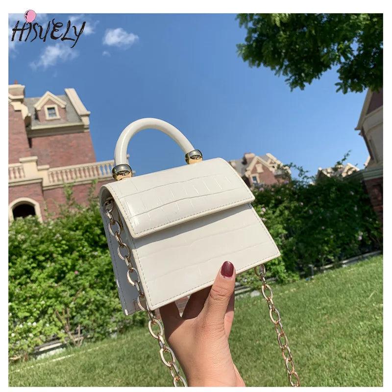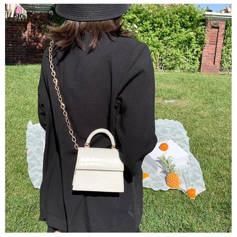 Chic Stone Pattern Crossbody Bag with Chain for Women
