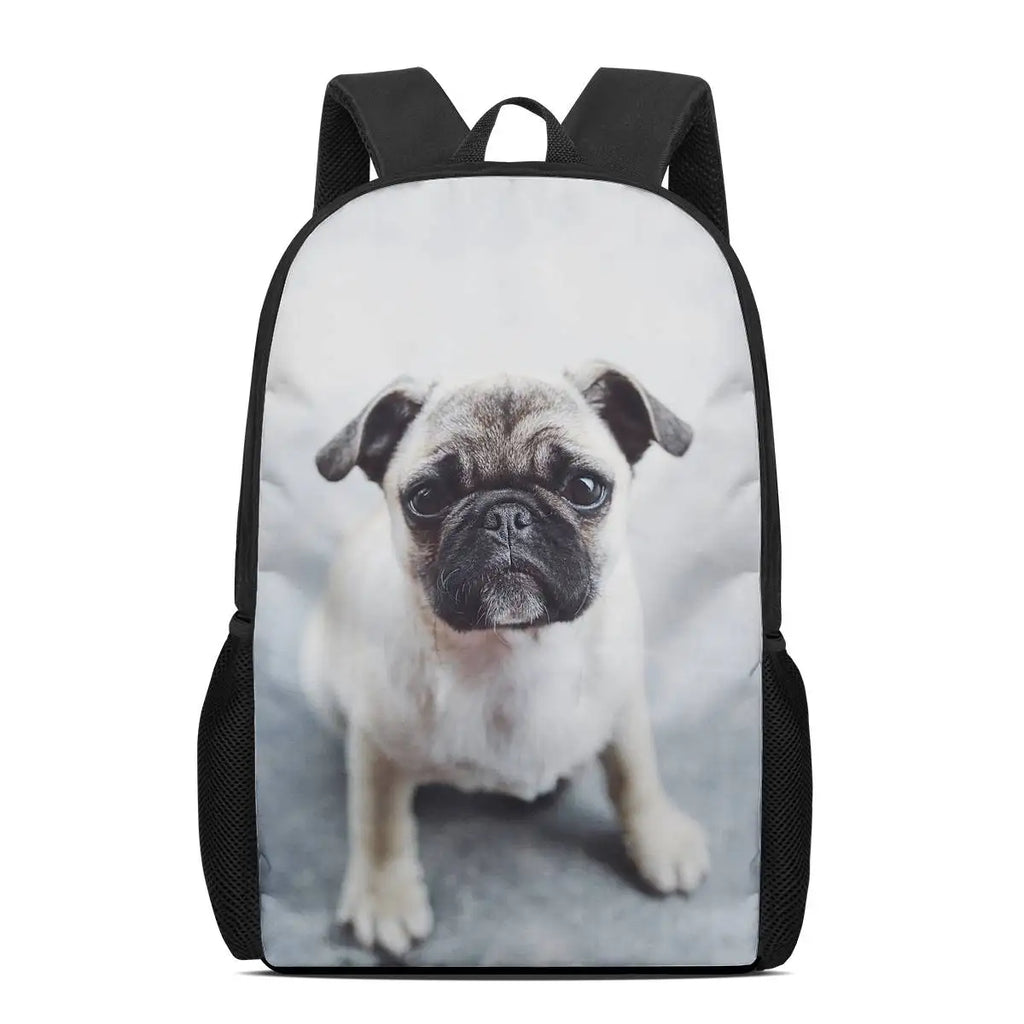 This school bag features a cute pug dog 3D print design, perfect for boys and girls. Ideal for teenagers, students, and kids going to school. The backpack is durable and spacious, making it a great choice for carrying books and other essentials.