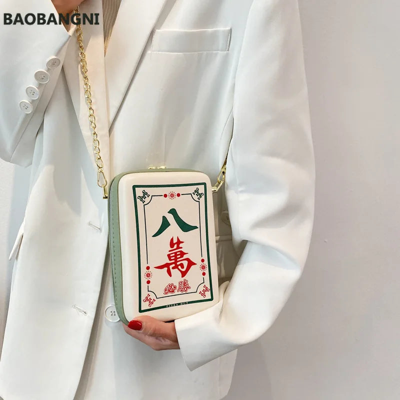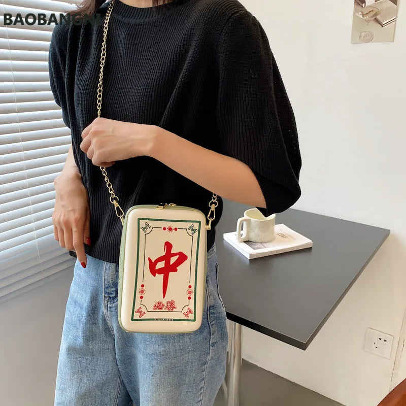 Chinese Mahjong Crossbody Bag Women Chain Shoulder Messenger Bag