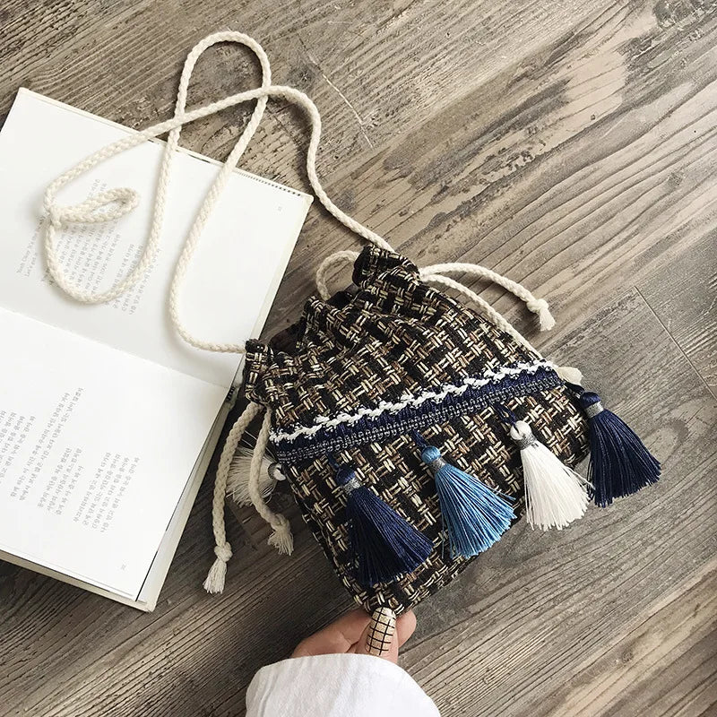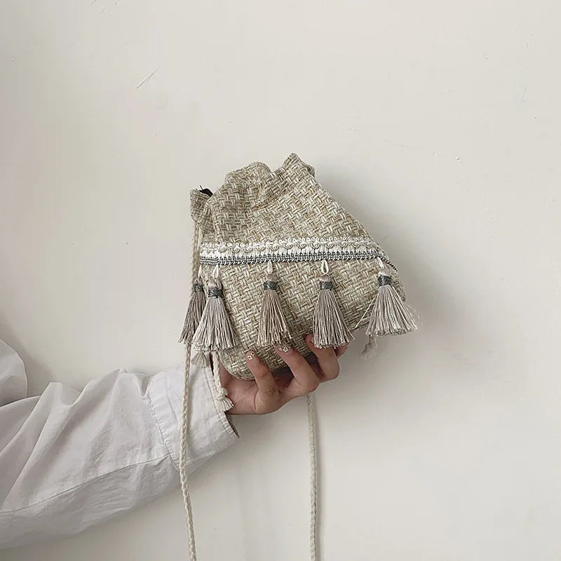 Chinese Style Shoulder Bag Costume Cloth Purse Tassel Bucket Bags