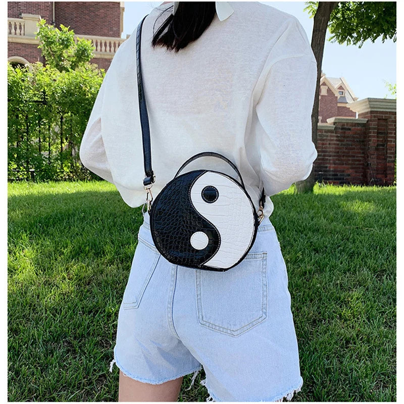 This circular shoulder bag is designed for women who appreciate style and functionality. Made of high-quality PU leather, this messenger handbag is perfect for daily use.