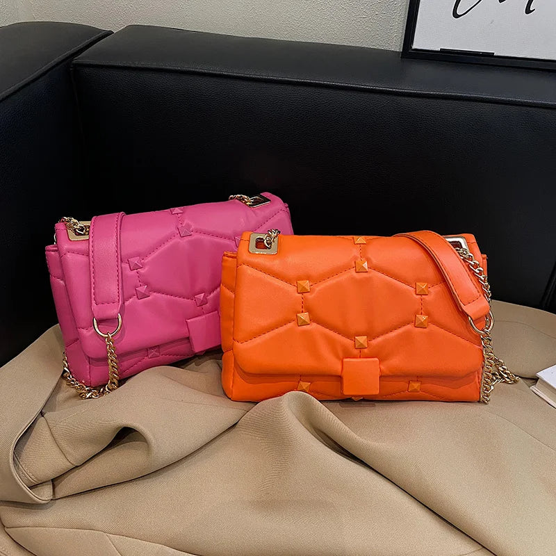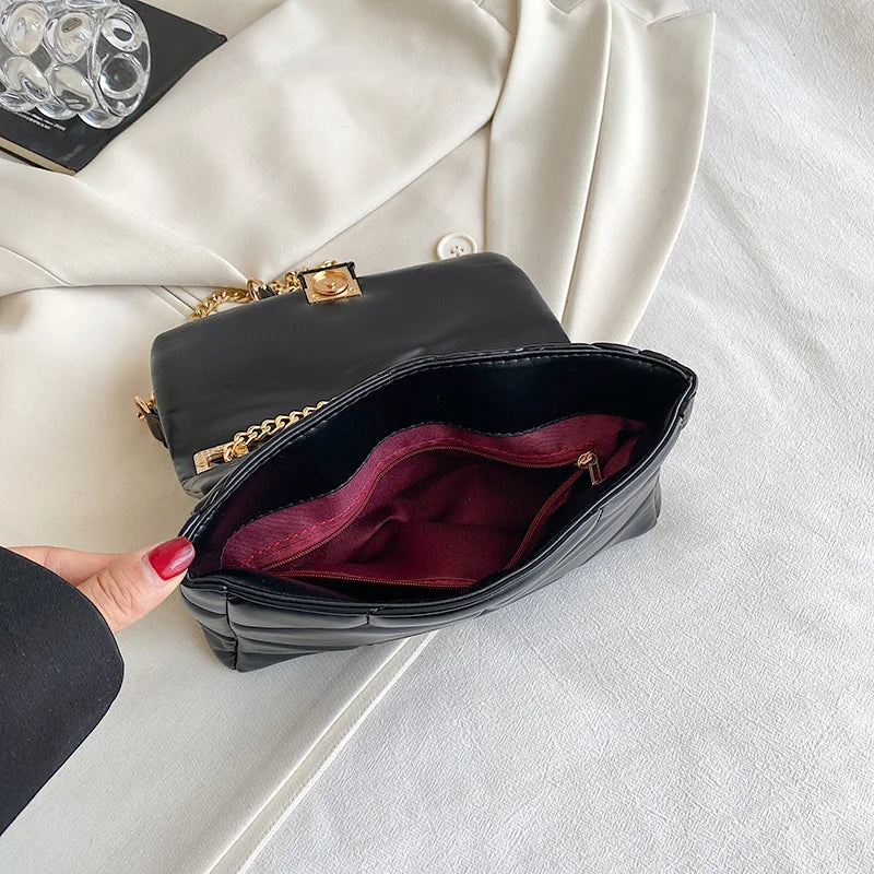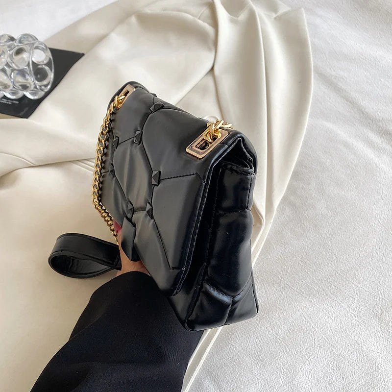 This classic chain women's bag is a perfect all-match handbag and purse for any occasion. It features a square design with one shoulder strap, ideal for carrying essentials in style.
