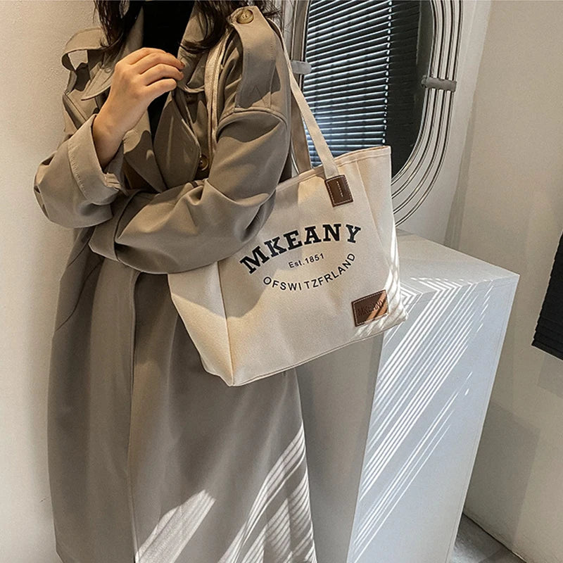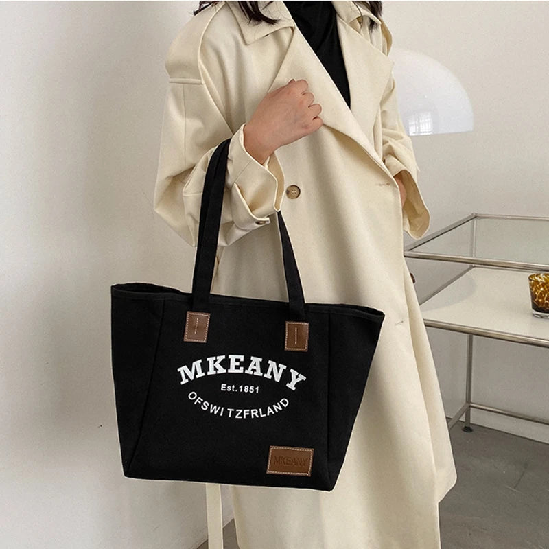 Stay stylish and organized with this classic letter big bag made of high-quality canvas material. Perfect for shopping, commuting, or school.