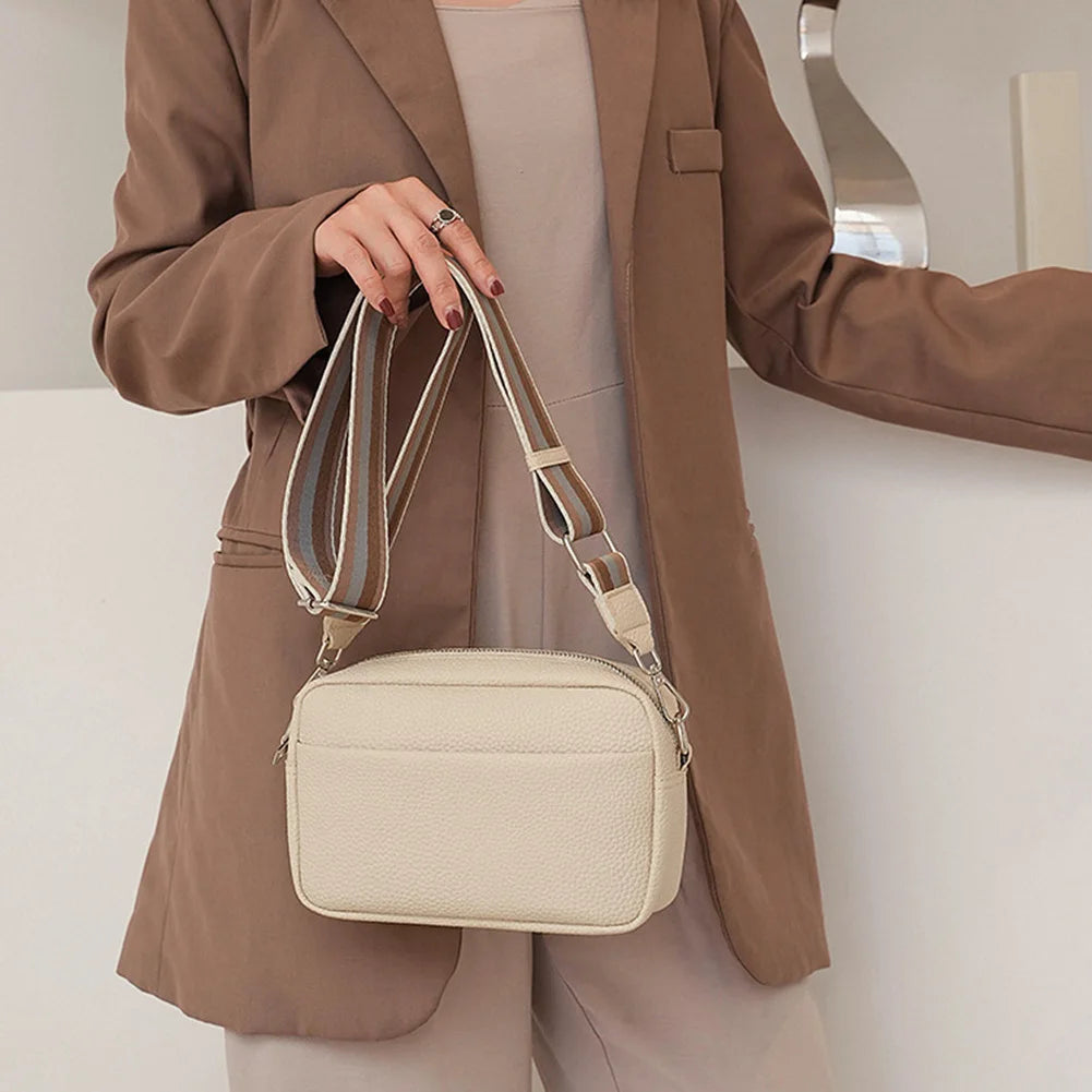 Classic Women Messenger Bag PU Shoulder Bag Wide Strap Solid Crossbody Bags