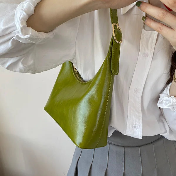 This small handbag is made of high-quality oil leather and features a classic hobo design. It is perfect for daily use and adds a retro touch to your outfit.