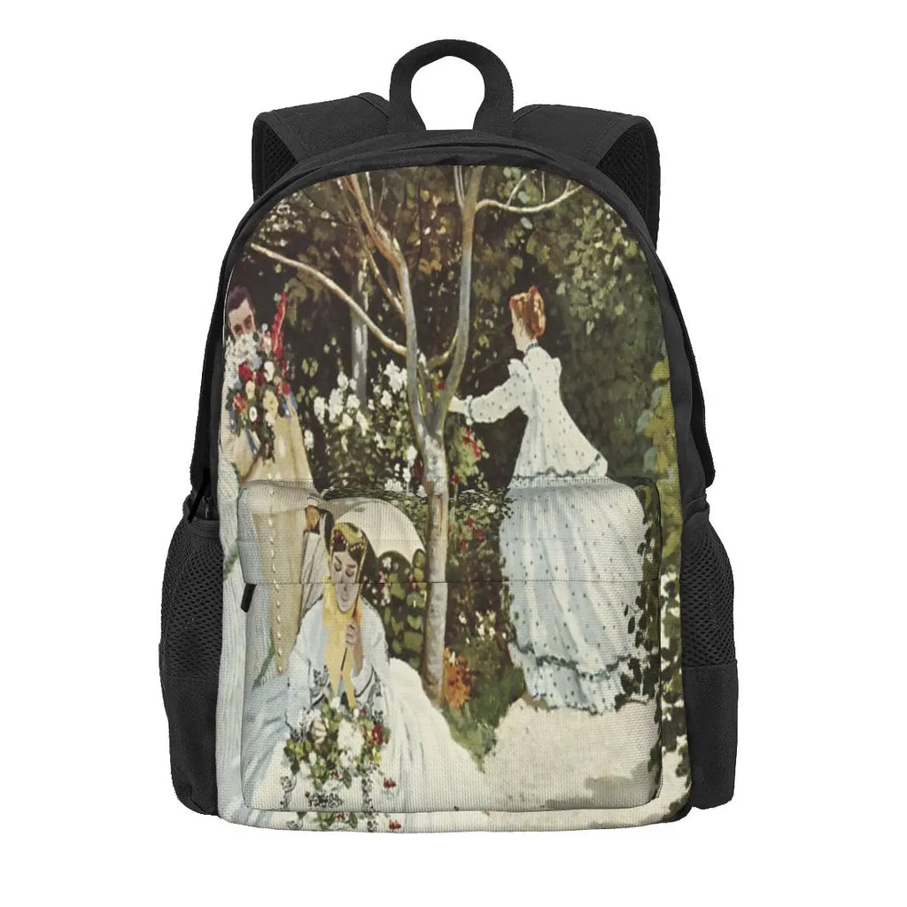 Elevate your style with this beautiful Claude Monet inspired backpack featuring a Women in the Garden design. This backpack is perfect for art enthusiasts and fashion-forward individuals.