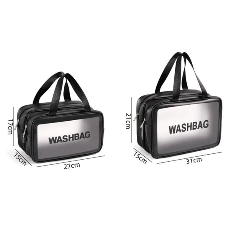 Stay organized while traveling with this transparent cosmetic bag. Ideal for storing makeup and toiletries. The clear design makes it easy to locate items.