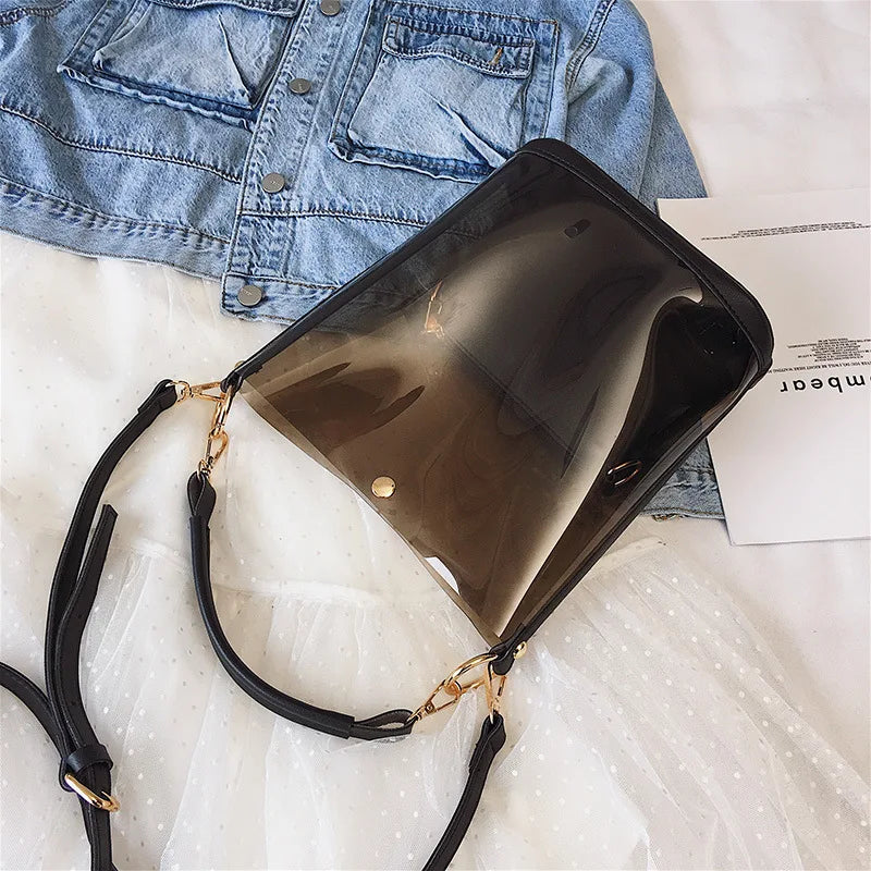 Clear PVC Handbag Set Transparent Women's Crossbody Bucket Bag 2pcs