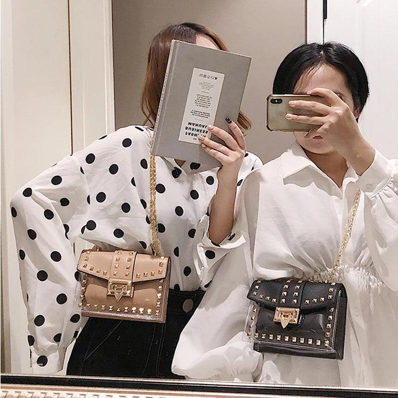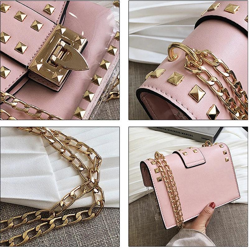 Clear PVC Shoulder Bags Women Jelly Rivets Crossbody Bag
