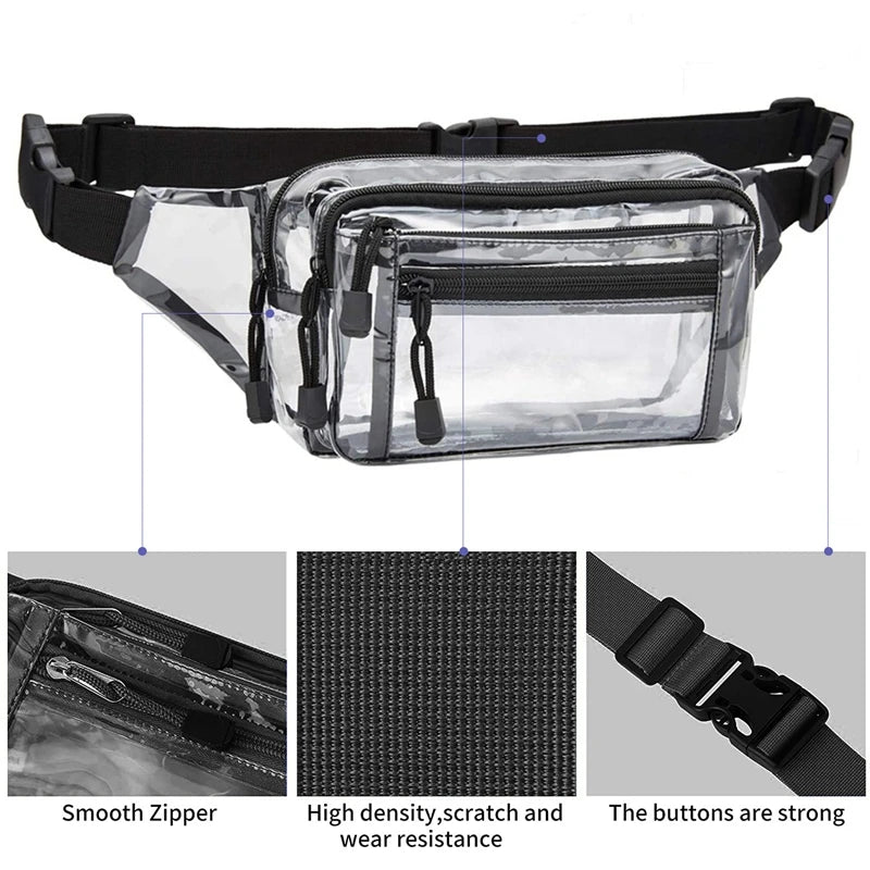 Clear Waterproof Waist Pack Transparent Zipper Closure Outdoor Waist Bag