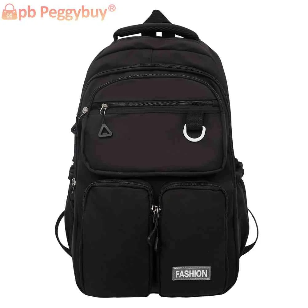 College Student Rucksack Solid Harajuku Bookbag Large Capacity Waterproof Nylon