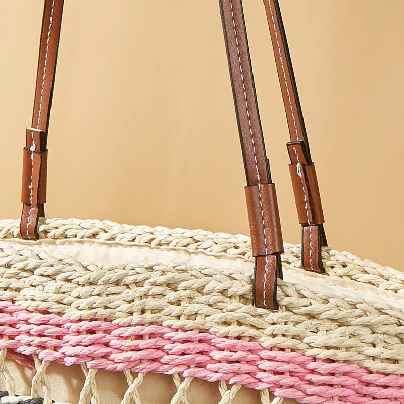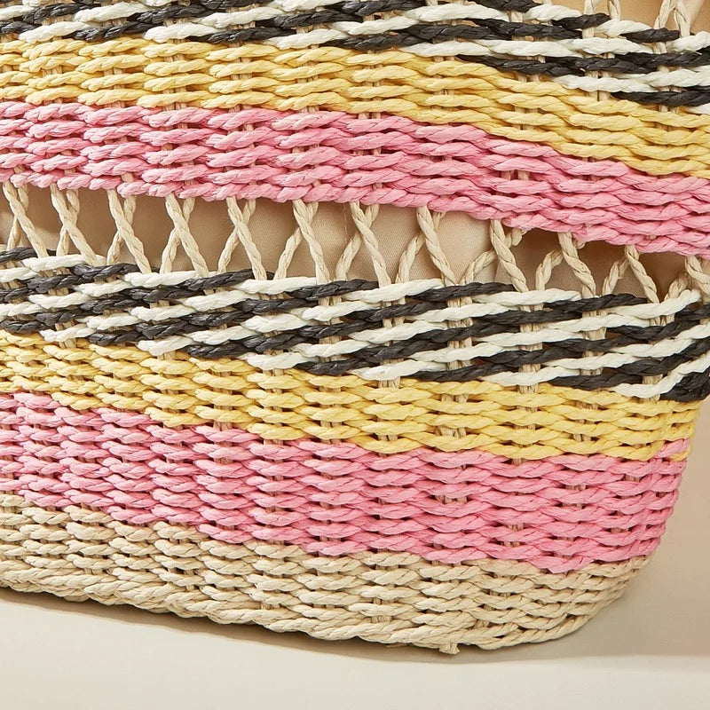 Embrace bohemian vibes with this colorful straw woven shoulder bag, perfect for your vacation or beach outings. Its large-capacity design makes it versatile and stylish.