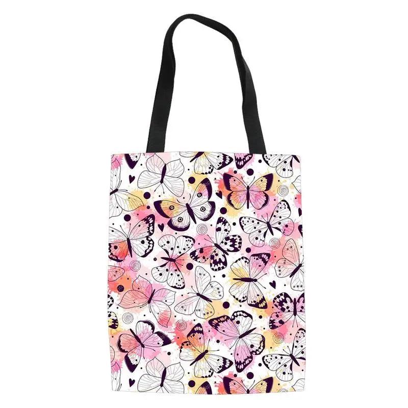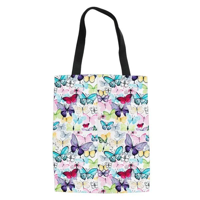Stay stylish with these vibrant butterfly print tote bags, perfect for shopping, beach trips, or everyday use.