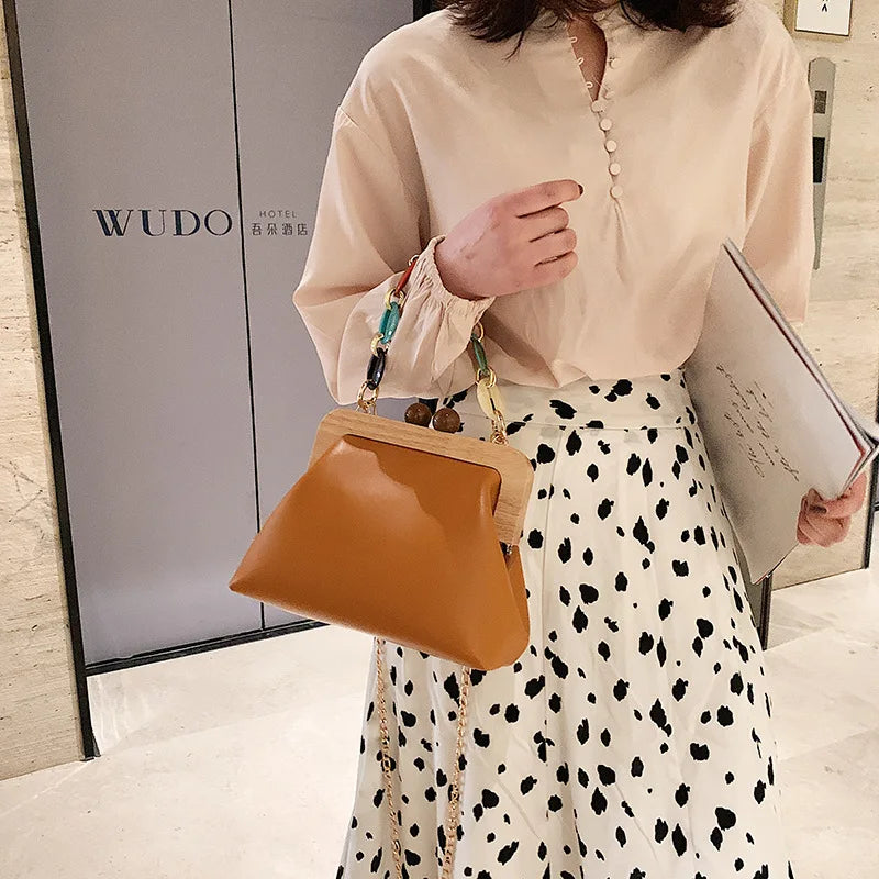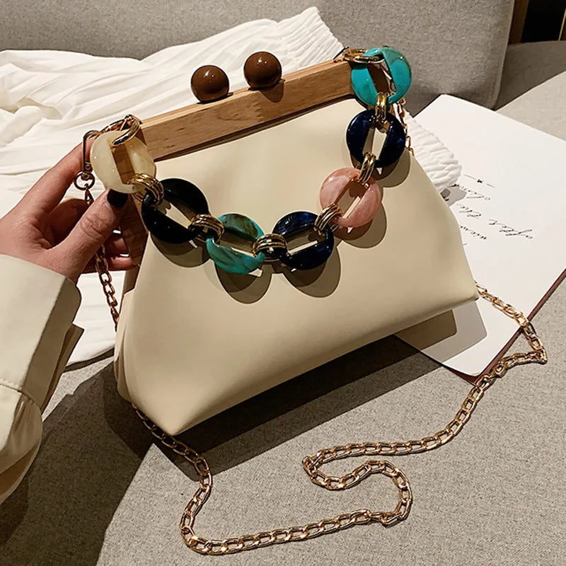 Colorful Chain Handbag Women's Messenger Bag Wooden Clip Bag