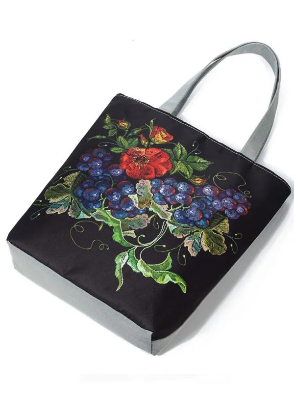 This female canvas handbag features vibrant embroidery of florals and birds, making it the perfect summer accessory. The spacious tote is ideal for carrying your essentials and is great for eco-friendly shopping.