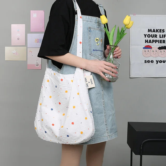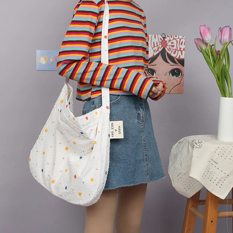 Colorful Print Polka Dots Canvas Shoulder Bag for College Girls