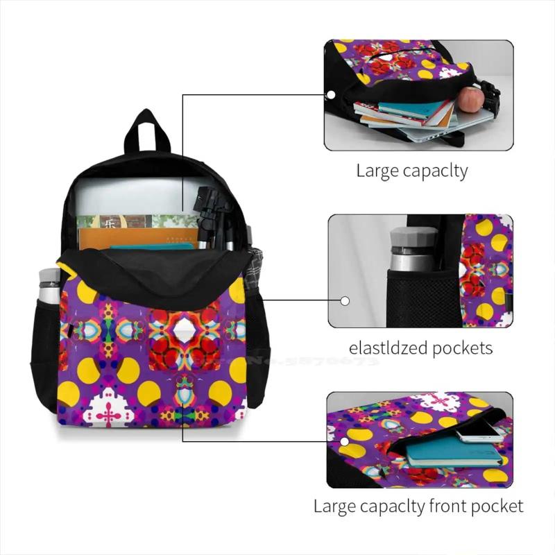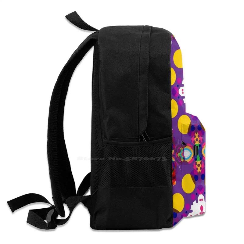 This backpack features a vibrant and fun abstract rings design. Great for students, school, laptops, and travel.
