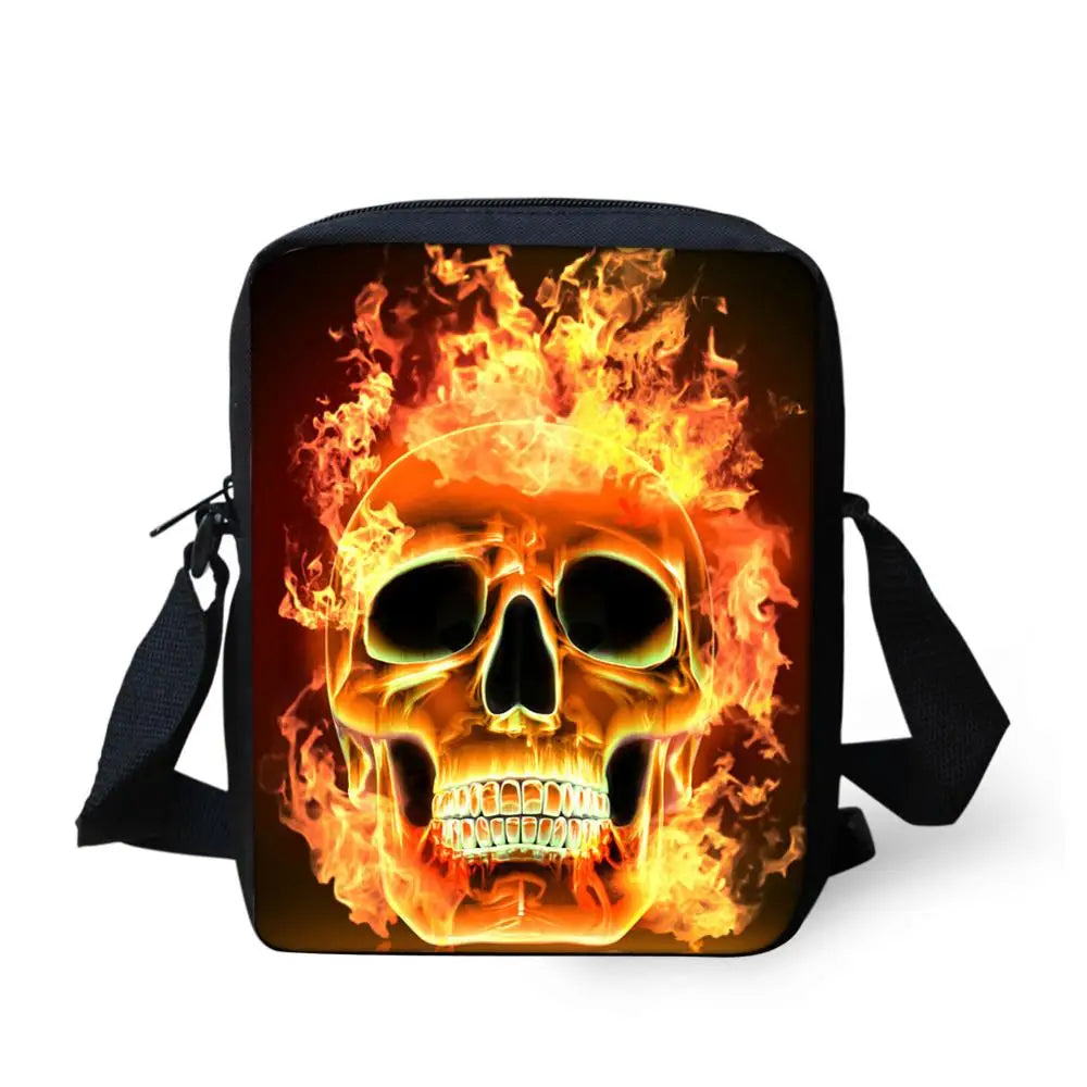 This messenger bag features a vibrant and stylish skeleton style pattern, making it perfect for teenagers and kids. It's a casual cross-body bag that can also be used by women. Ideal as a shoulder bag or holiday gift bag.