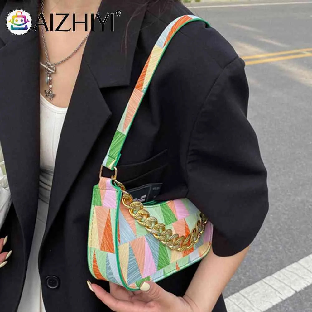 Colorful Triangle Printed Small Shoulder Bag with Thick Chain for Travel