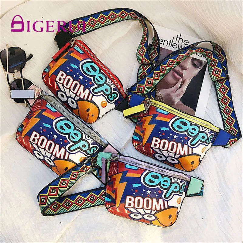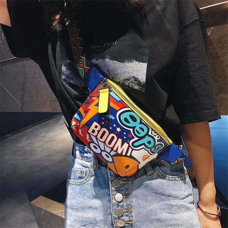 Colorful Women Waist Bag Fanny Pack Belt Bags Graffiti Chest Handbag