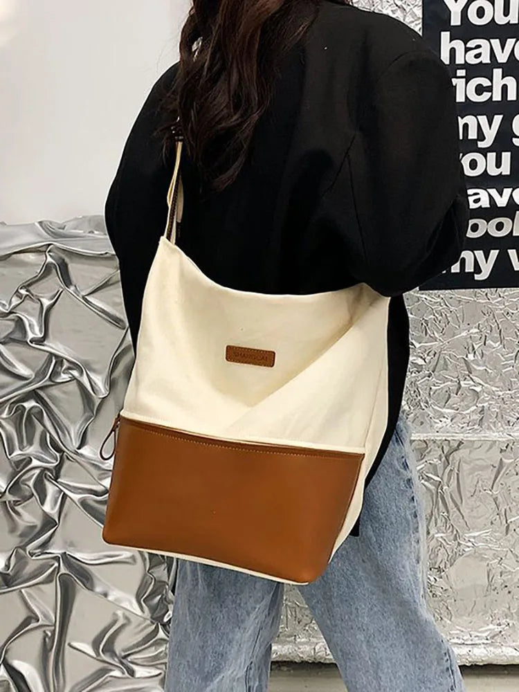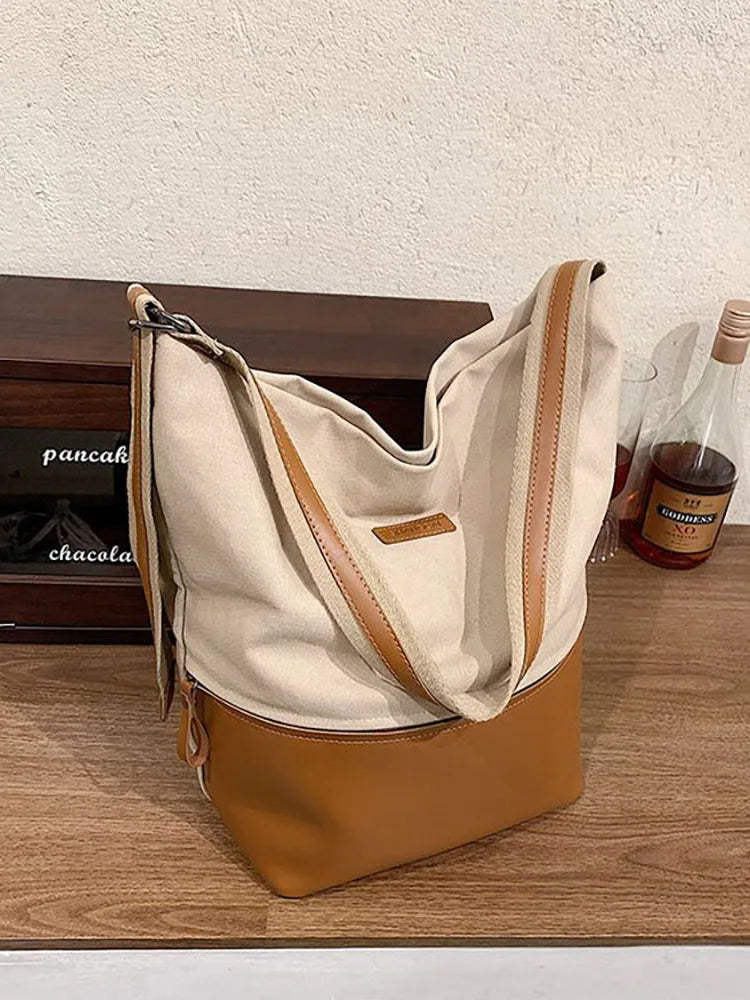 Contrast Canvas Bucket Crossbody Bag for Women Large Capacity Shoulder Bag