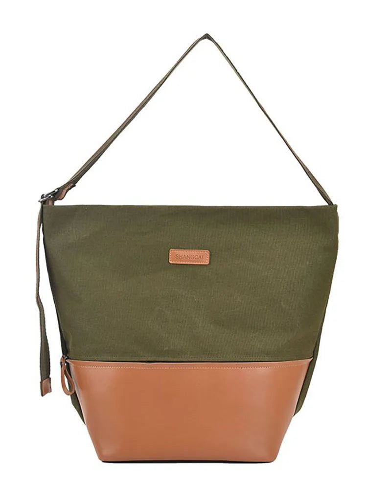 This stylish canvas bucket crossbody bag is perfect for women who need a spacious shopper handbag. It features a large capacity for all your essentials and is designed with a contrast color scheme for a trendy look.