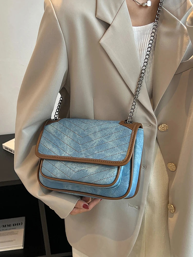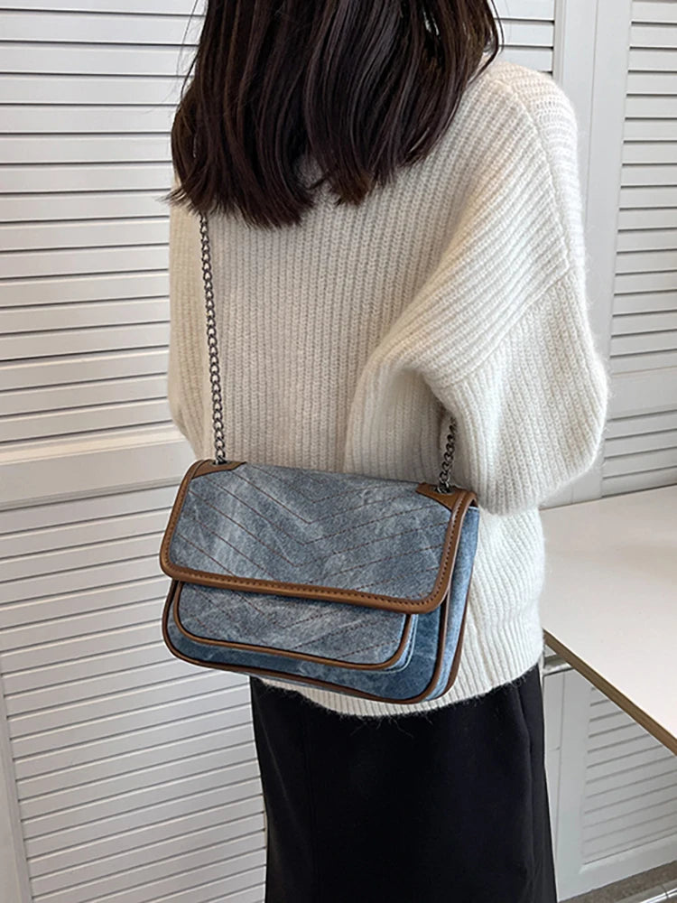 Stay stylish with this denim crossbody bag featuring a unique underarm design. Perfect for everyday use.