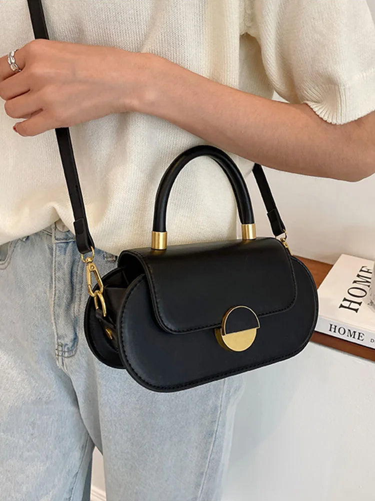 Contrast Flap Women's Bag Top Handle Crossbody Pu Leather Handbag