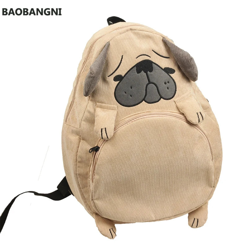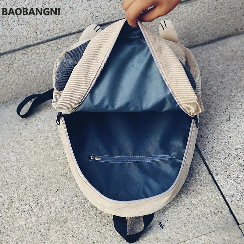 Corduroy Animal Fox and Dog Shape School Backpack for Teenagers Girls