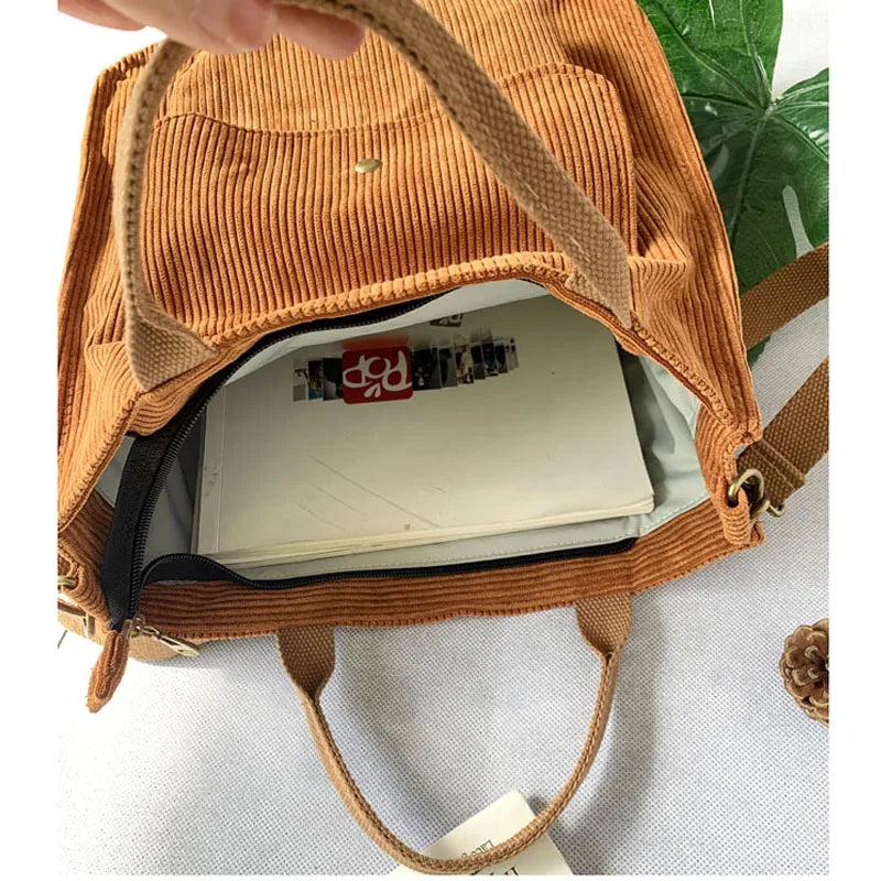 Stay fashionable and functional with this versatile corduroy bag for women. Perfect for autumn and winter, this shopper bag is ideal for girls, students, and anyone on the go. Made of durable canvas material, this handbag is designed for everyday use.