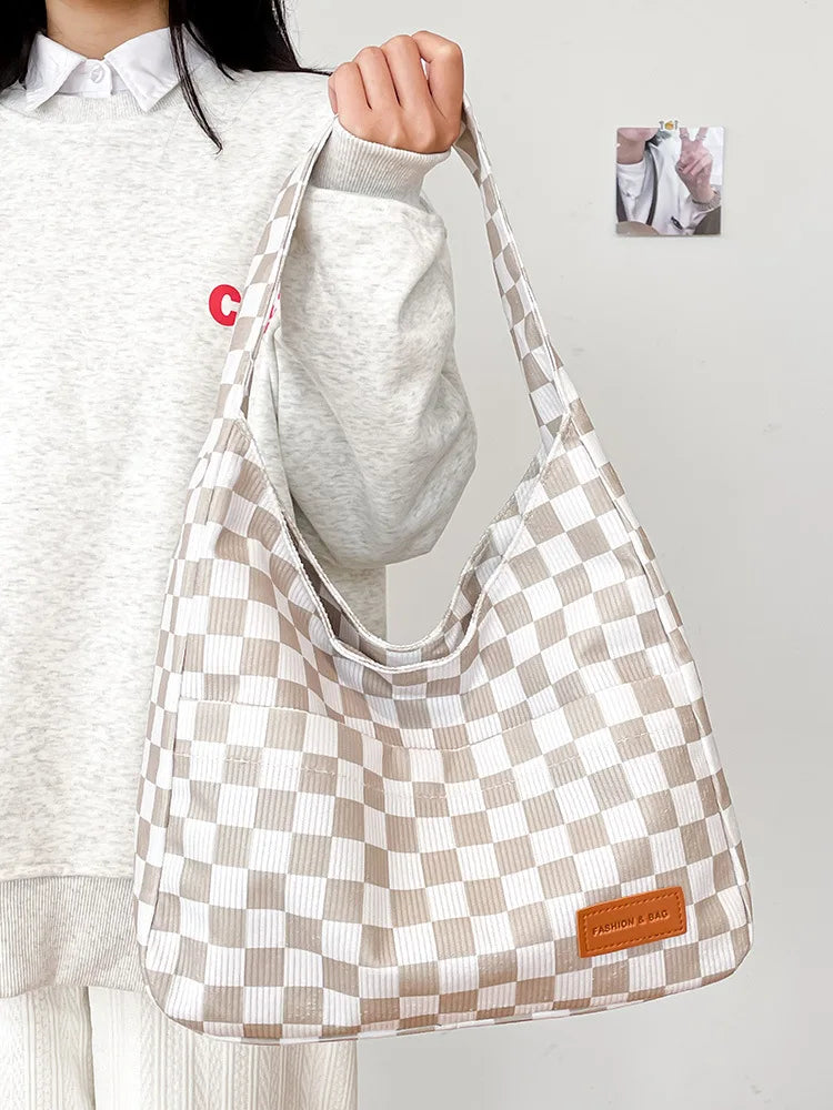 Corduroy Canvas Shoulder Tote Bags For Women Lattice Women's Hasp Handbag