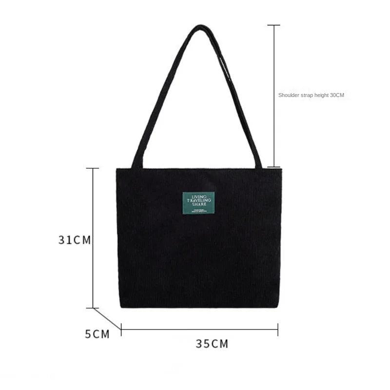 This versatile shoulder bag is made of corduroy and offers large capacity for shopping and daily use.