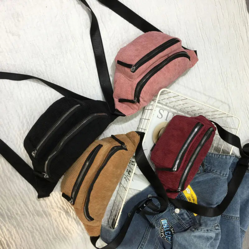 Corduroy Chest Bag Women Causal Bum Bag Waist Pack Money Travel Holiday Pouch