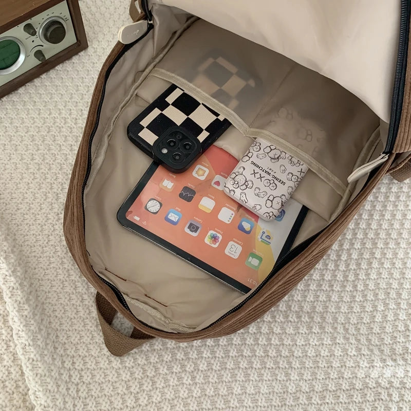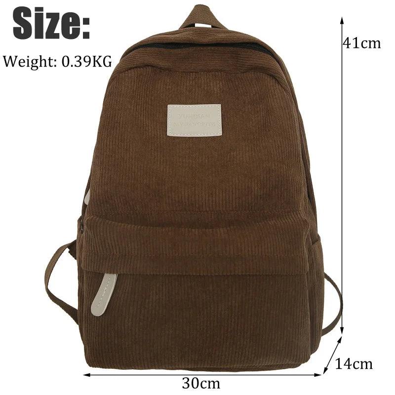 Corduroy College School Backpack Laptop Bag Retro Travel Leisure Book Bag