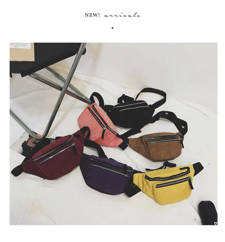 Corduroy Fanny Pack for Women Zipper Belt Bag