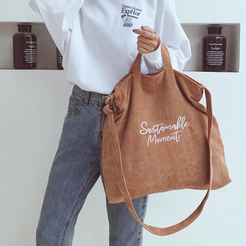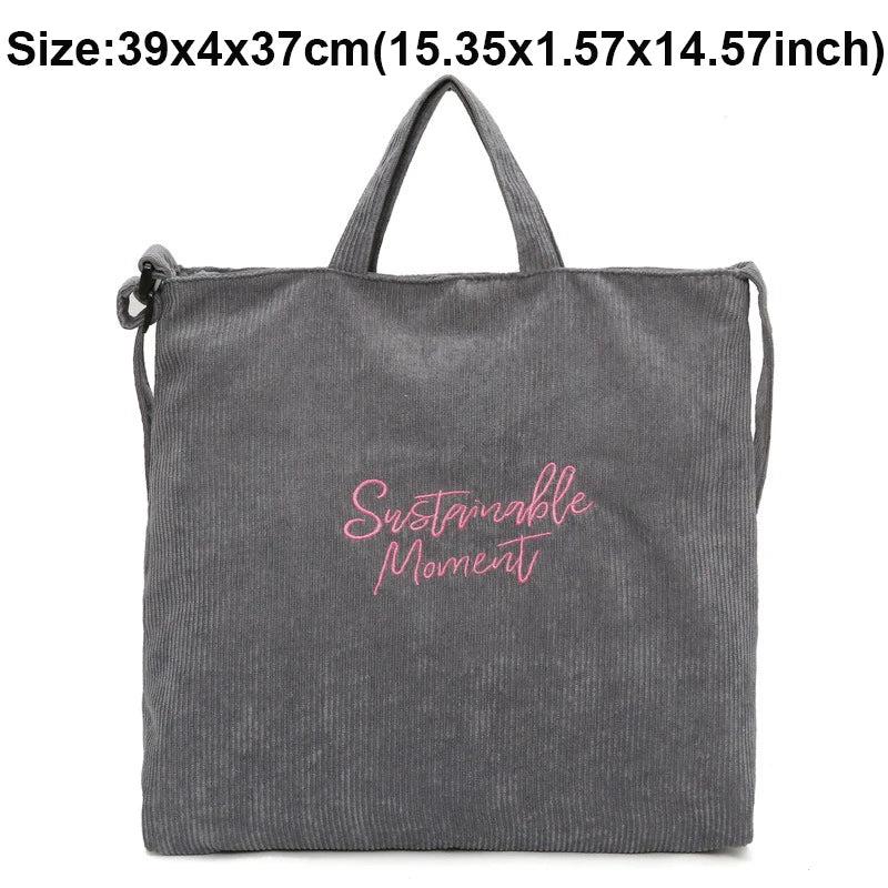 This corduroy handbag offers a spacious design perfect for women on-the-go. Ideal for school girls, ladies, and casual outings.