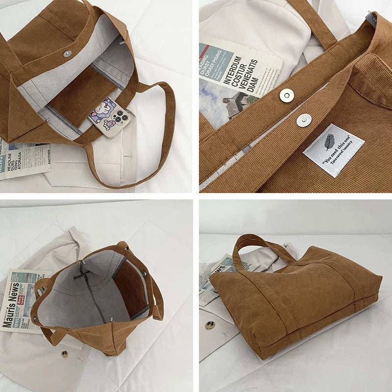 Corduroy Handbags Retro Canvas Shoulder Bags for Women Large Capacity