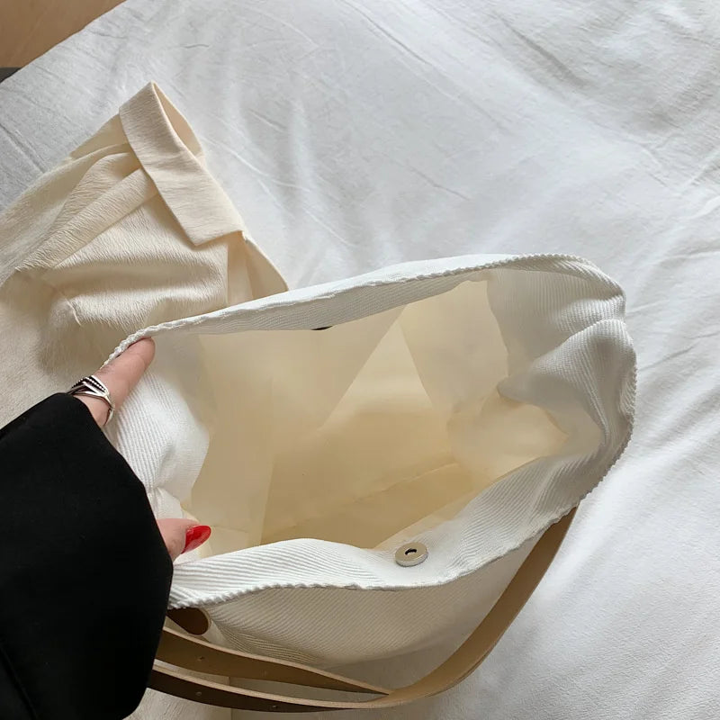 This corduroy tote bag is perfect for women looking for a stylish and spacious bag. It can be worn as a one shoulder or hand-held underarm dumpling bag while offering a large capacity for your essentials.
