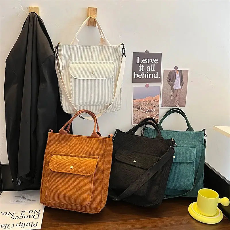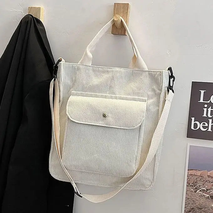 Stay stylish with this corduroy shopper bag, perfect for autumn and winter. Ideal for girls, students, book lovers, and anyone looking for a trendy shoulder bag.