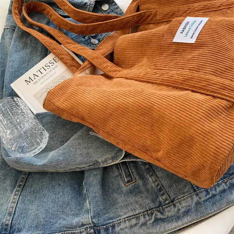 Corduroy Shopping Bag Canvas Shoulder Storage Handbag Large Tote