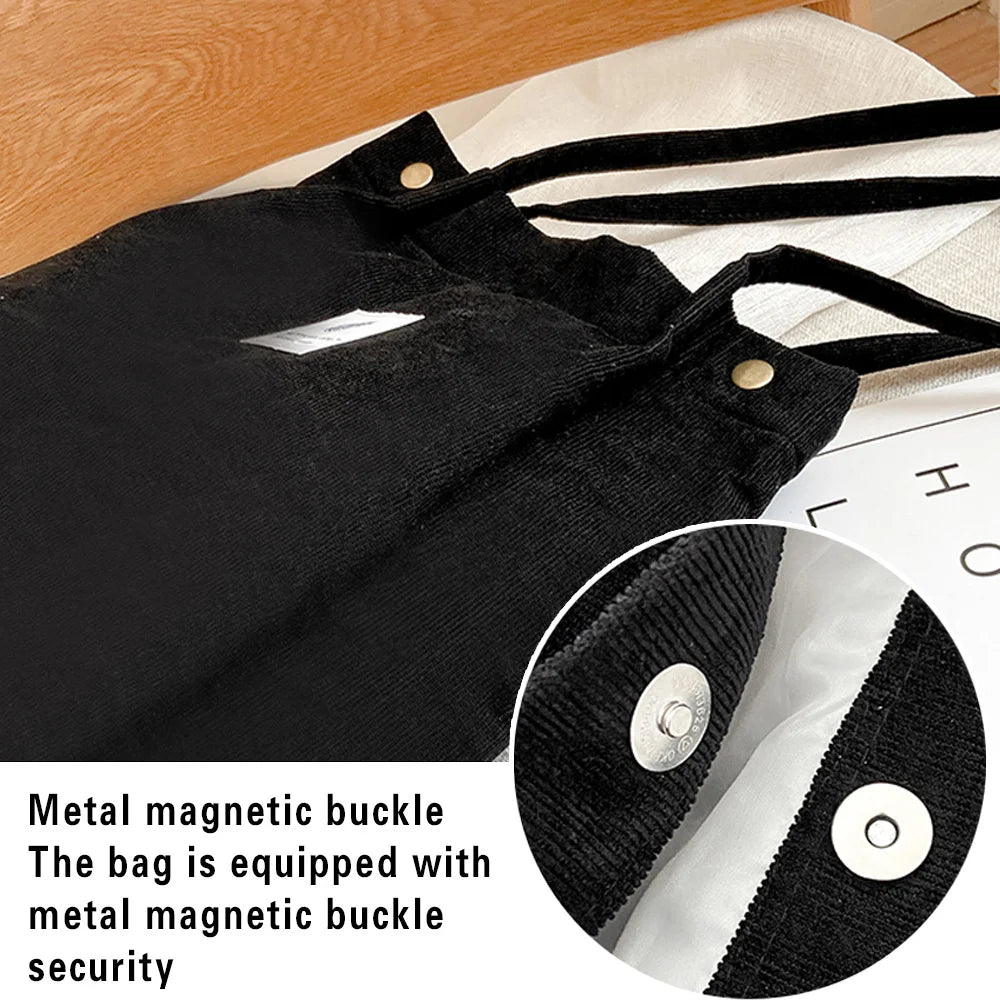 This canvas bag is a perfect accessory for women to carry their essentials while on the go. Made of durable corduroy, it is suitable for outdoor leisure activities, shopping trips, travel, and parties. The bag features a spacious main compartment and a stylish design.