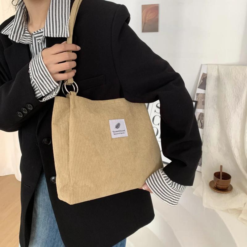Corduroy Shoulder Bag Large Capacity Canvas Handbag