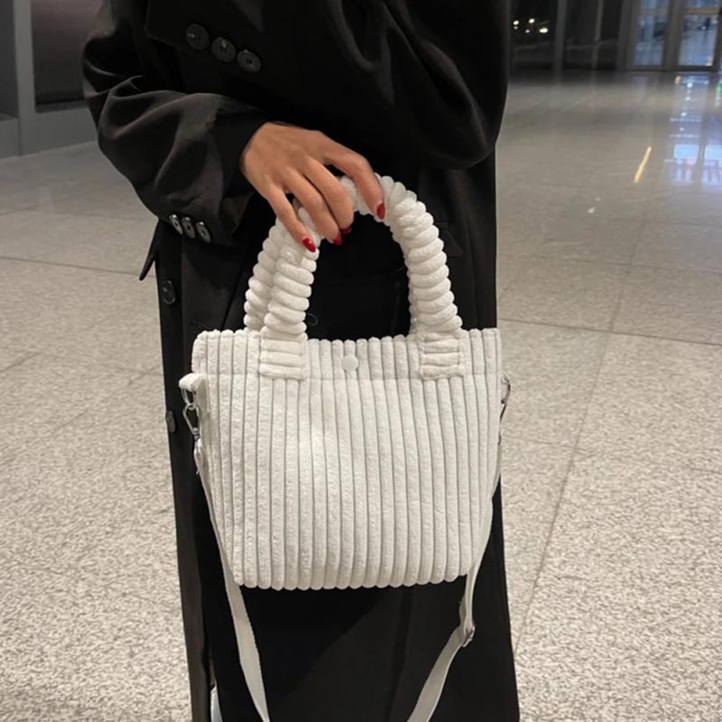 Corduroy Shoulder Bag Small Buckle Handbag Autumn Winter Fashion Decoration
