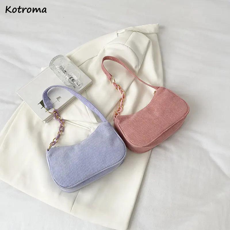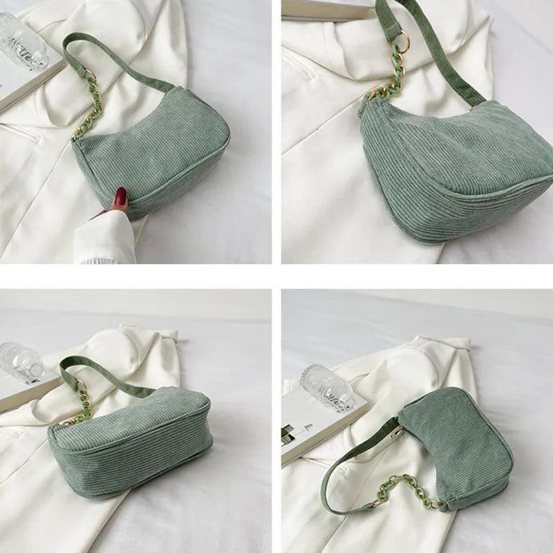 Corduroy Shoulder Bag Women Underarm Handbag Zipper Chain Mori-girl